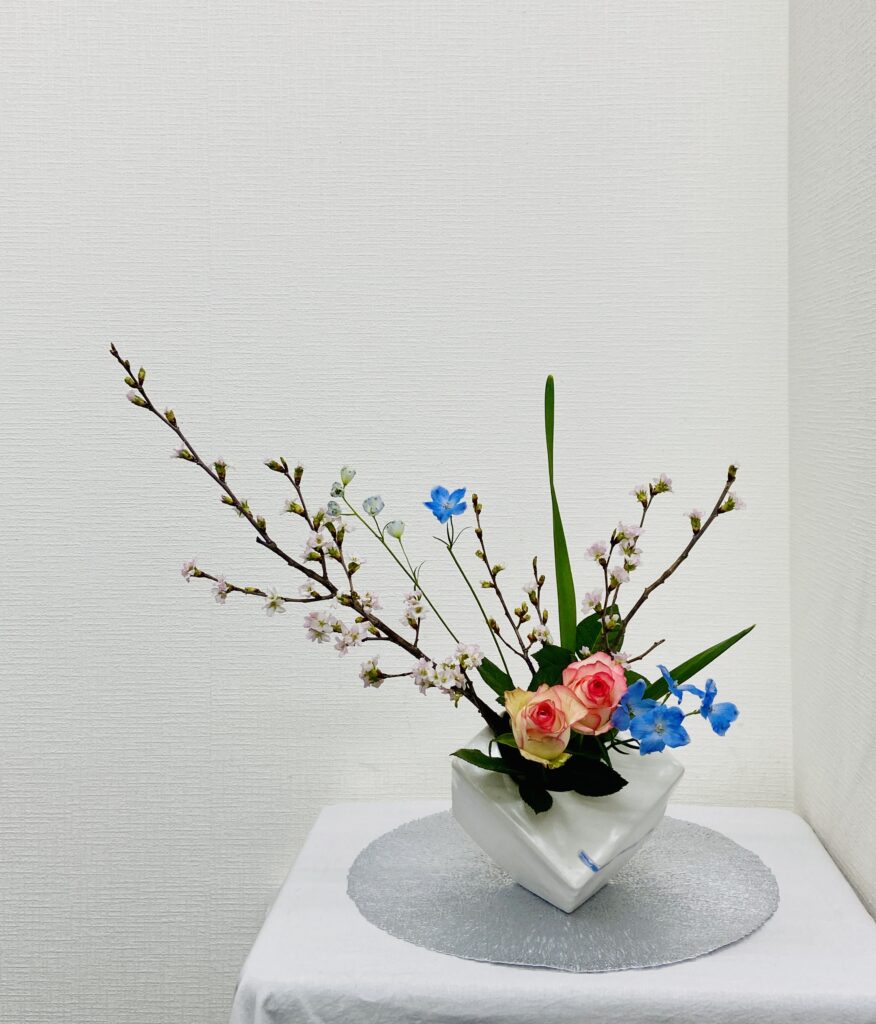 ほちょうきのRe神戸店では、補聴器相談に来られるお客様に季節を感じて頂けるよう、毎月2回 池坊の先生にお花を生けて頂いています。