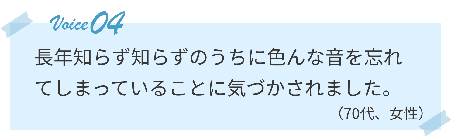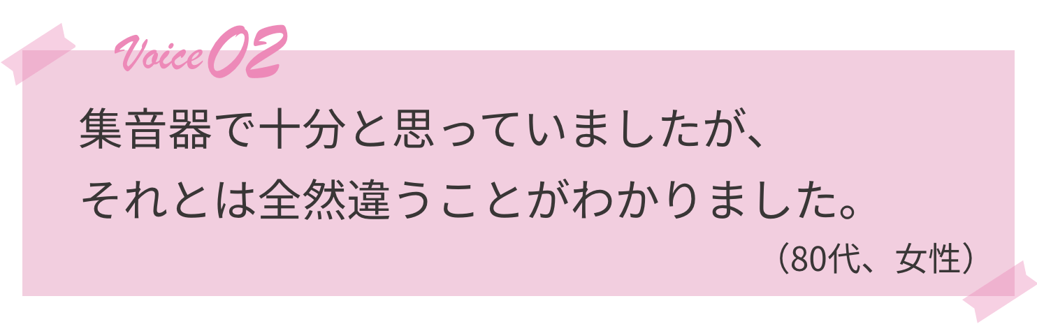 丁寧な調整やスタッフさんの激励のおかげで周囲の環境音にも気づけるようになり、嬉しかったです。